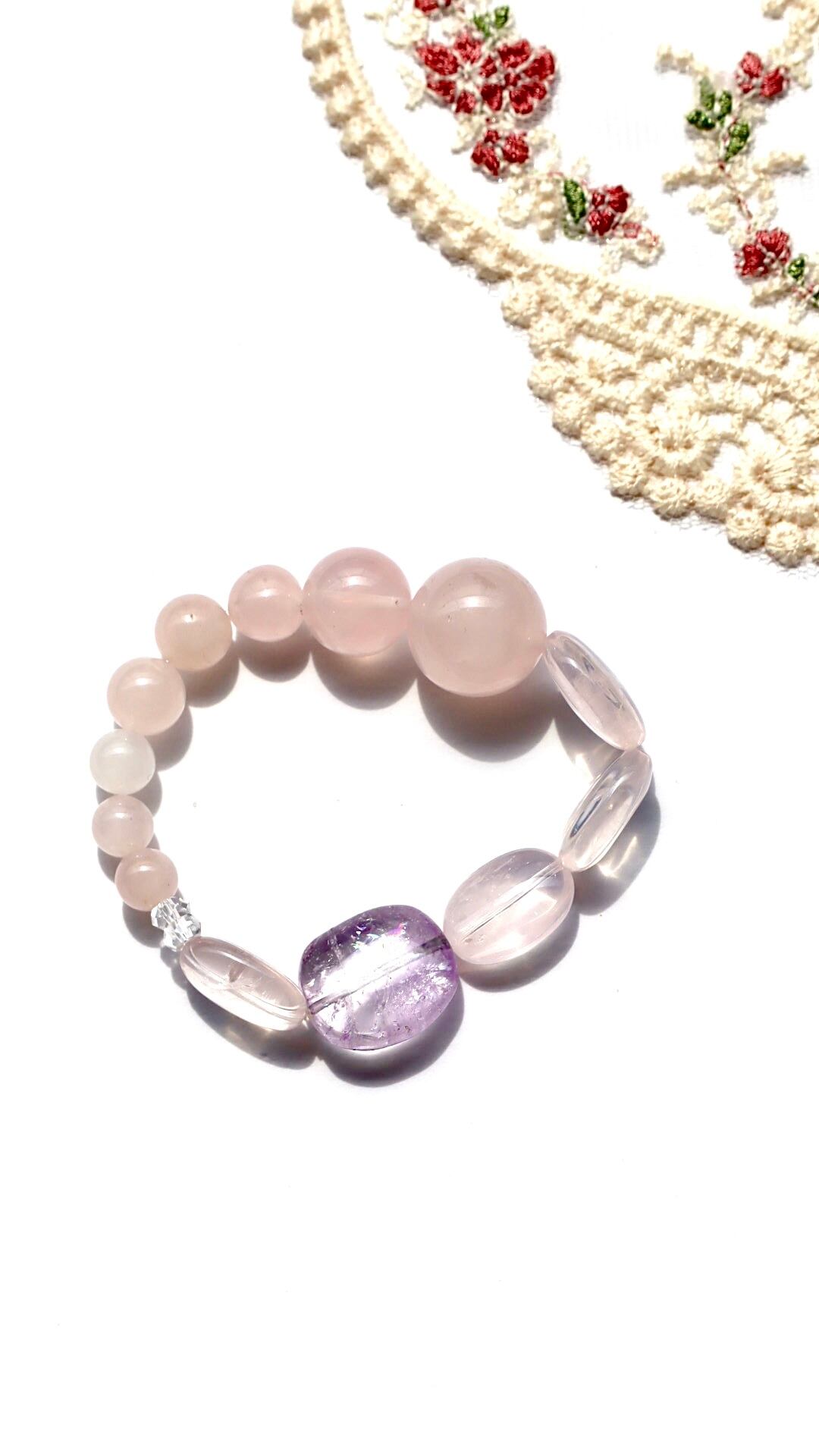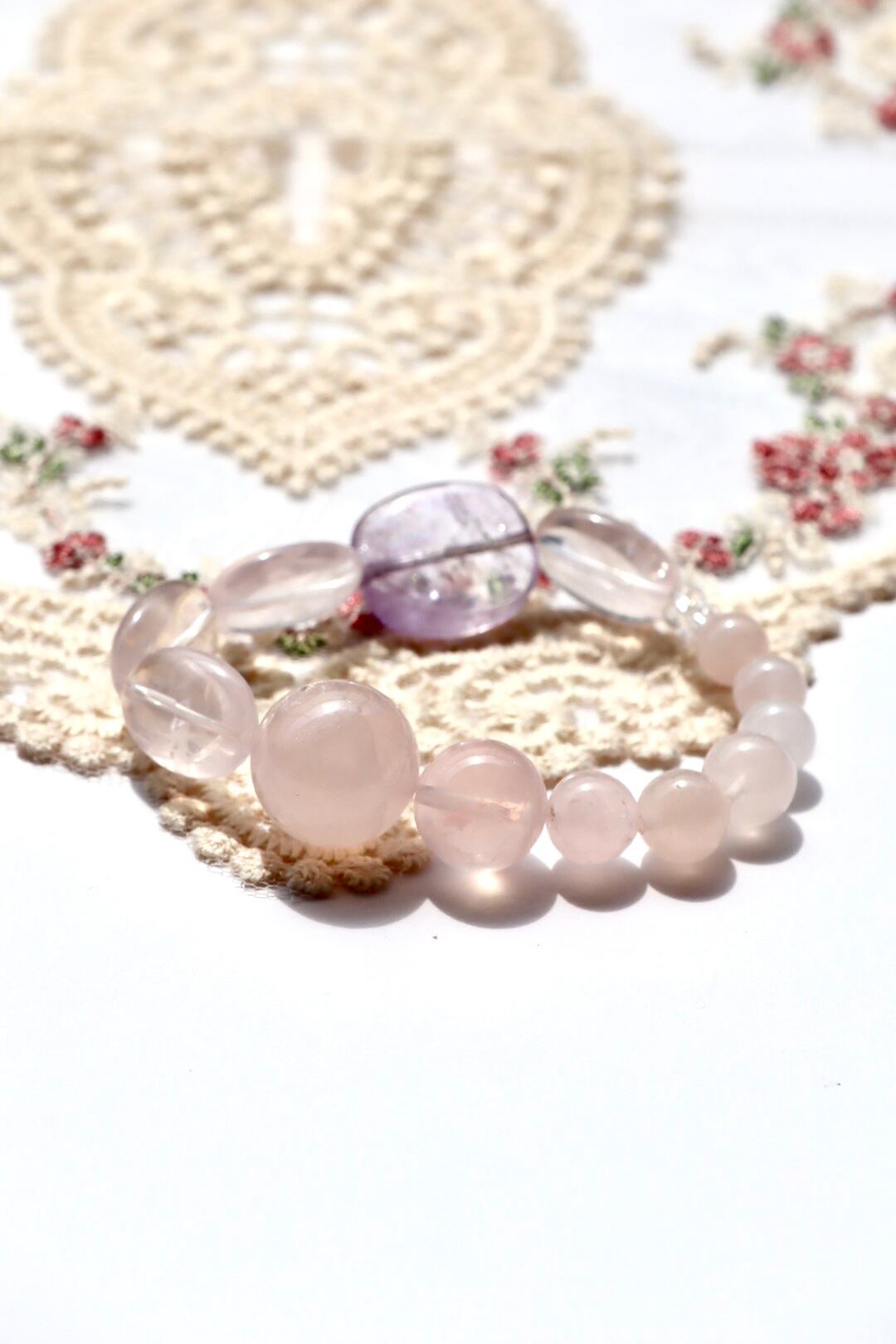 ローズクォーツ...恋のおまもり、女性のおまもり、美しさをサポートする、自己肯定を高める、心の傷や過去のトラウマを癒す、恋愛成就、人を愛するエネルギーを高める、優しさ、思いやりの心を高める、女性性が高まる、美しさや美的感覚がアップする、妊娠運がアップする