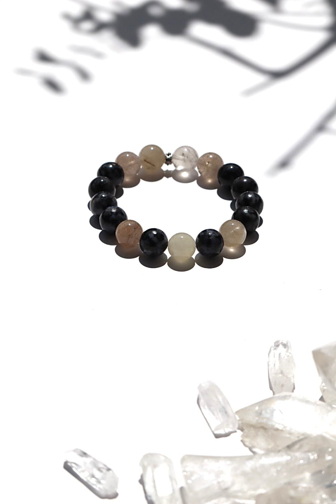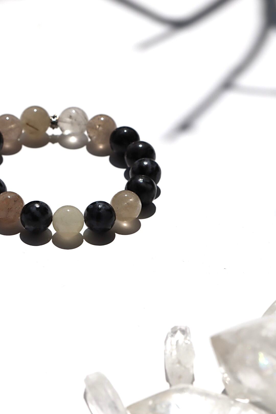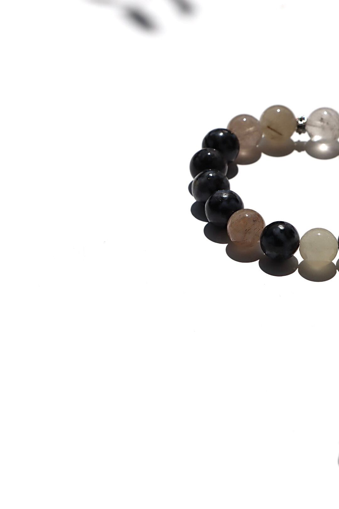 ミックスルチルクォーツ(約11mm)...ゴールド、ブロンズ、シルバー、ブラックなど様々な色のルチルが混在することで、それぞれのパワーが融合された“多面的なエネルギーを持つ石。総合的な運気上昇。金運、仕事運、勝負運、人間関係運…すべての運気に、チャンスを引き寄せる、 豊かさの循環を生む、精神の安定と集中力、石を強くする、運命の導きを感じる、必要な人・タイミングを引き寄せる“運命の糸”の象徴、 自信と行動力を感じる、自分軸の強化、現実を動かすクリスタル、魂の進路を照らす光