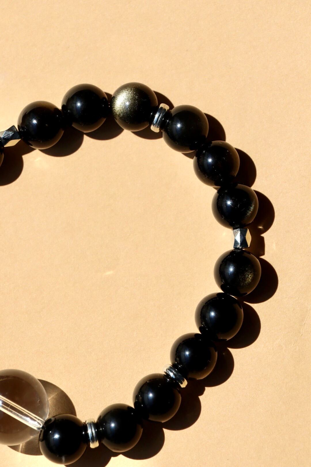 ゴールデンオブシディアン(10mm)...強いお守り、ネガティブを跳ね除ける、魔除け厄除け、悪霊を避ける、人間関係の整理、第六感をポジティブに働かせる、精神力体力をアップさせる、怠け心を撃退する、現実化の促進、