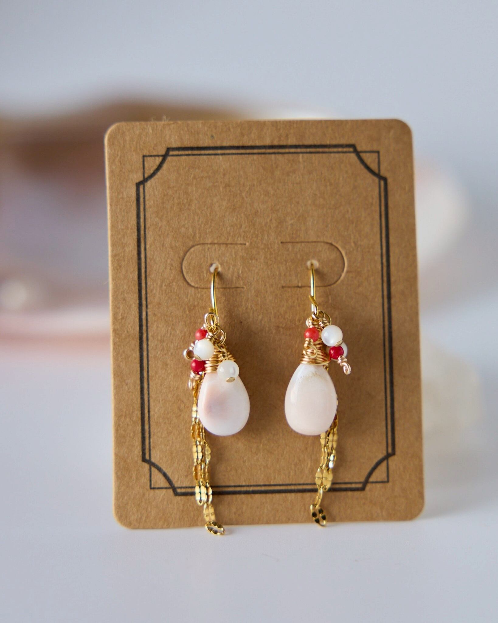 根本には小さなレッドコーラルとマザーオブパールを添えて、華やかさと可憐さをプラスしました。