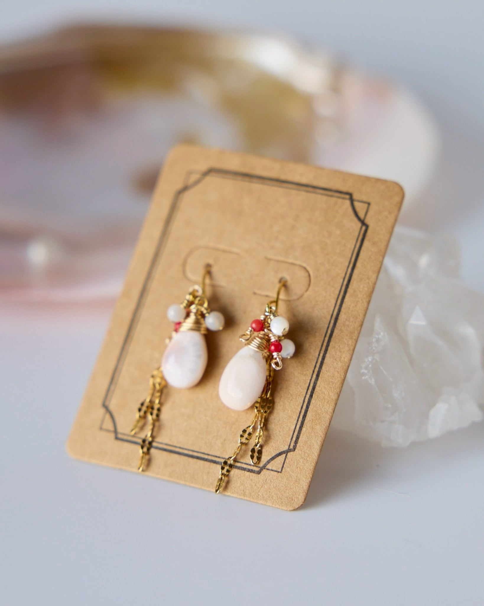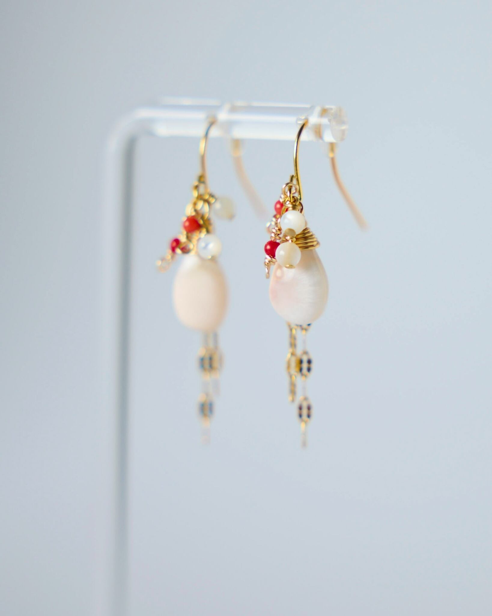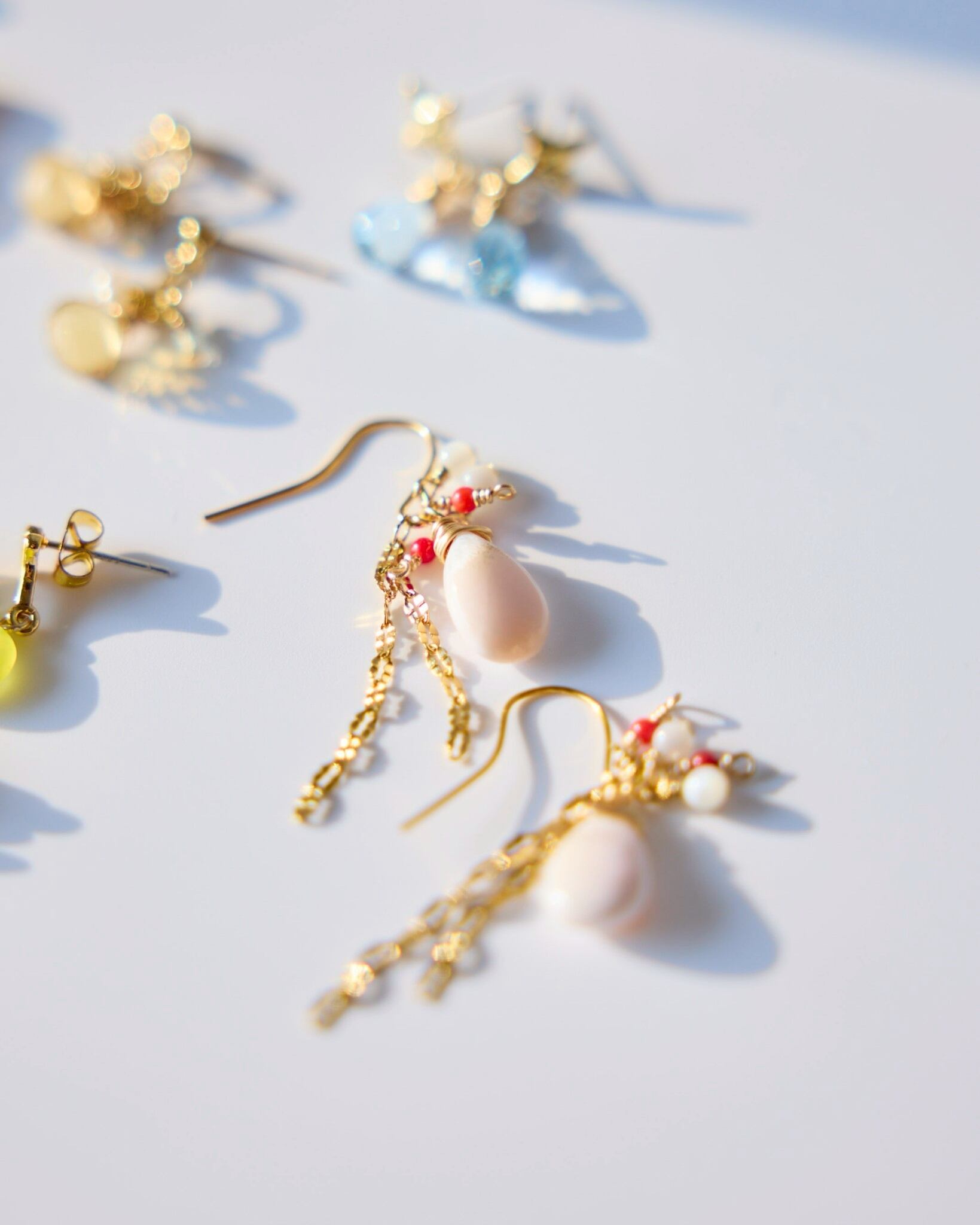 揺れるたび、やわらかな女性らしさが香り立つようなピアスです。
