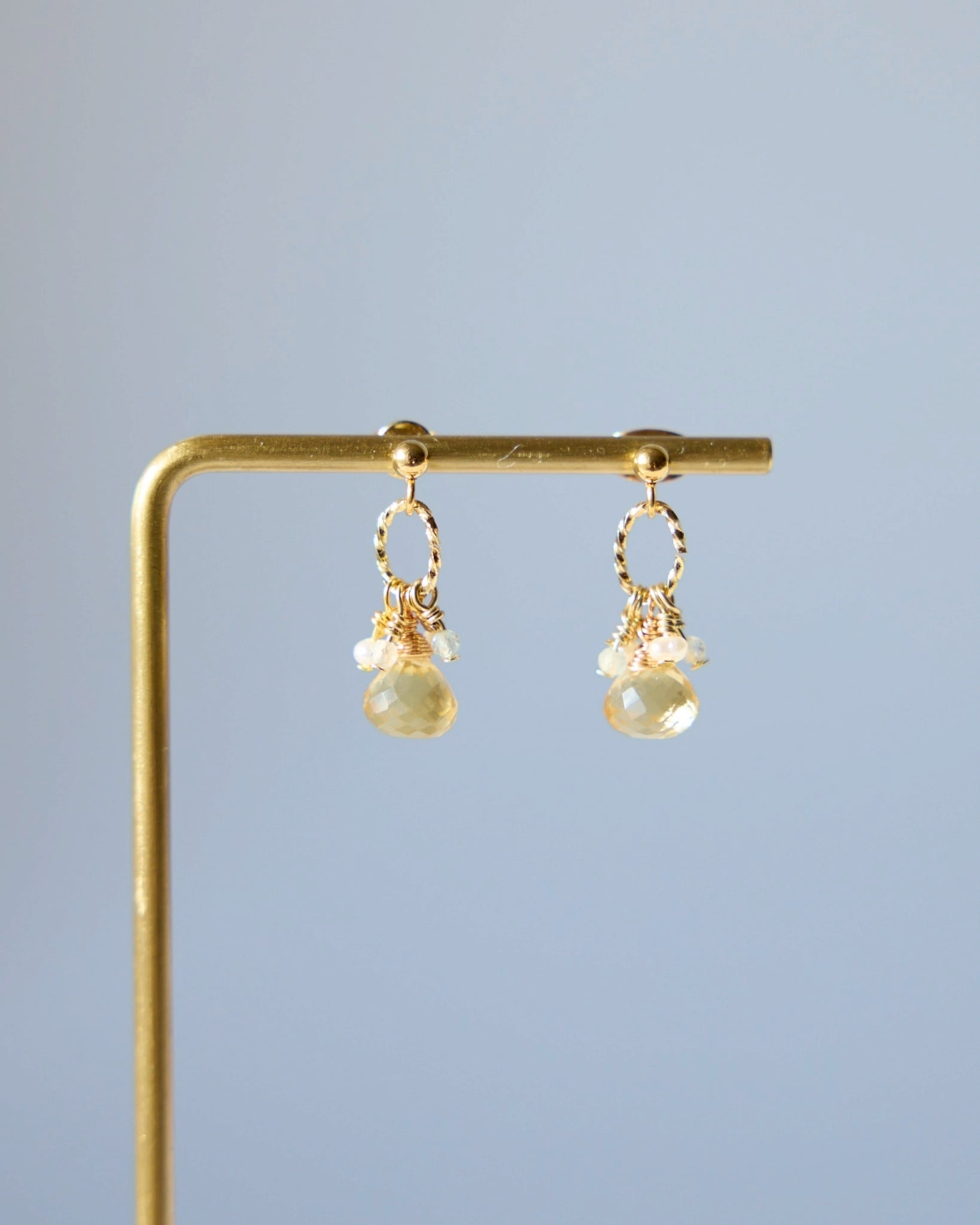透明感の高いマロンカットのシトリンが主役。ころんとキラキラ光をキャッチします。