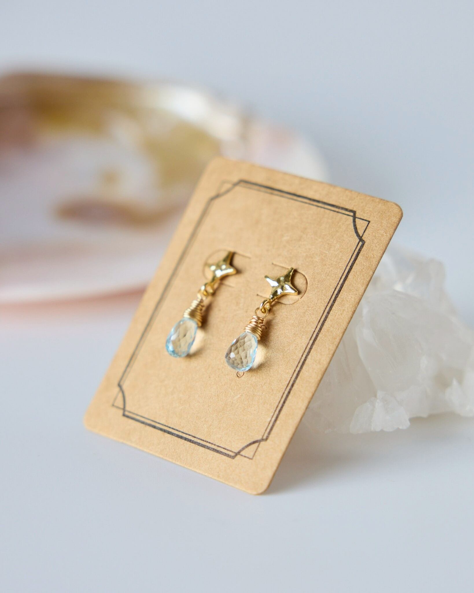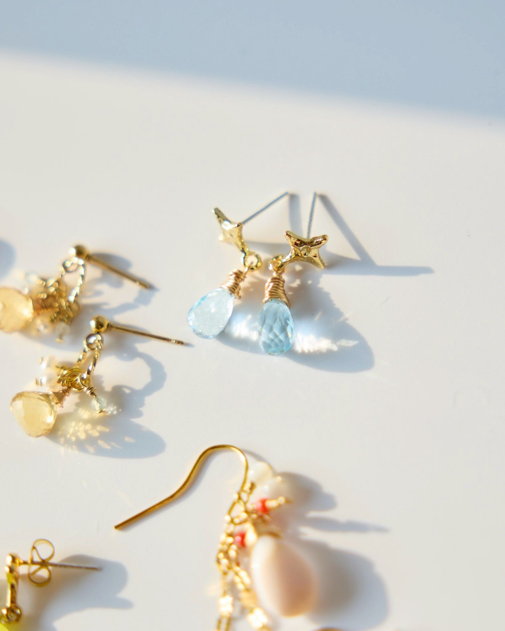 透明感のある青色が耳元でキラキラと揺れ、まるで天国から落ちてきたひとしずくのよう。
