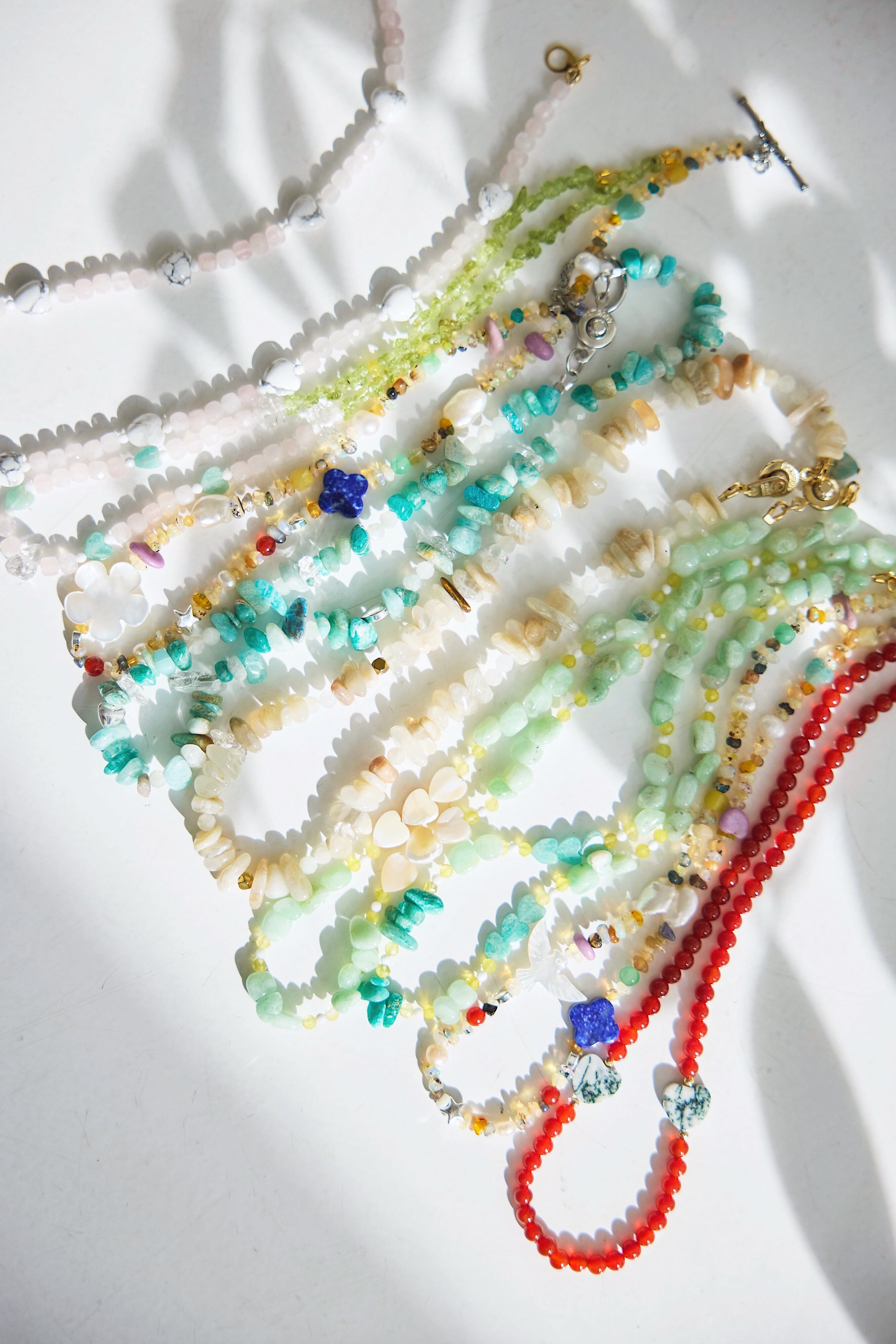 天然石の性質上、水や汗、太陽光や紫外線などで変色や経年劣化します。どうしても避けられないものですのでご理解ください。また、なるべく高温や多湿を避けてください。