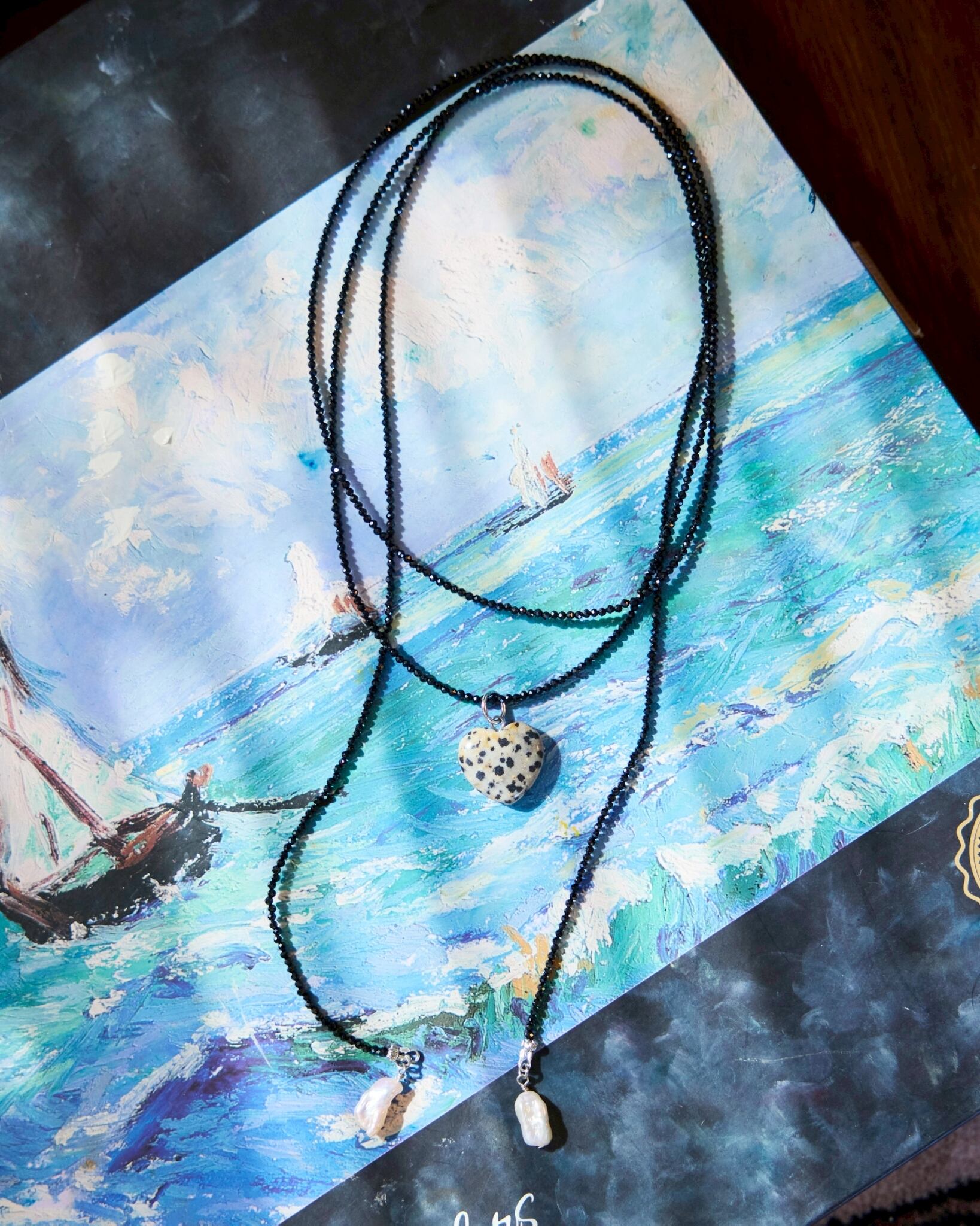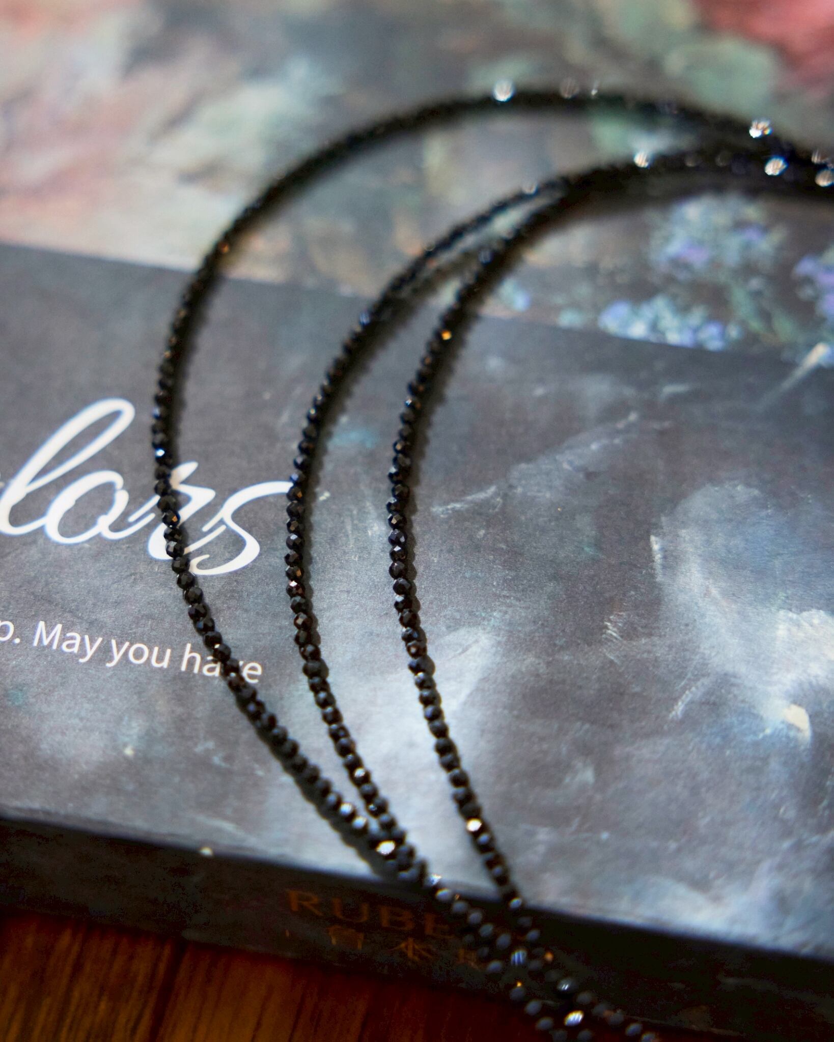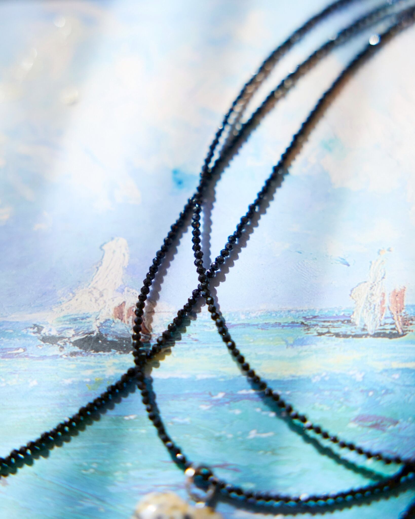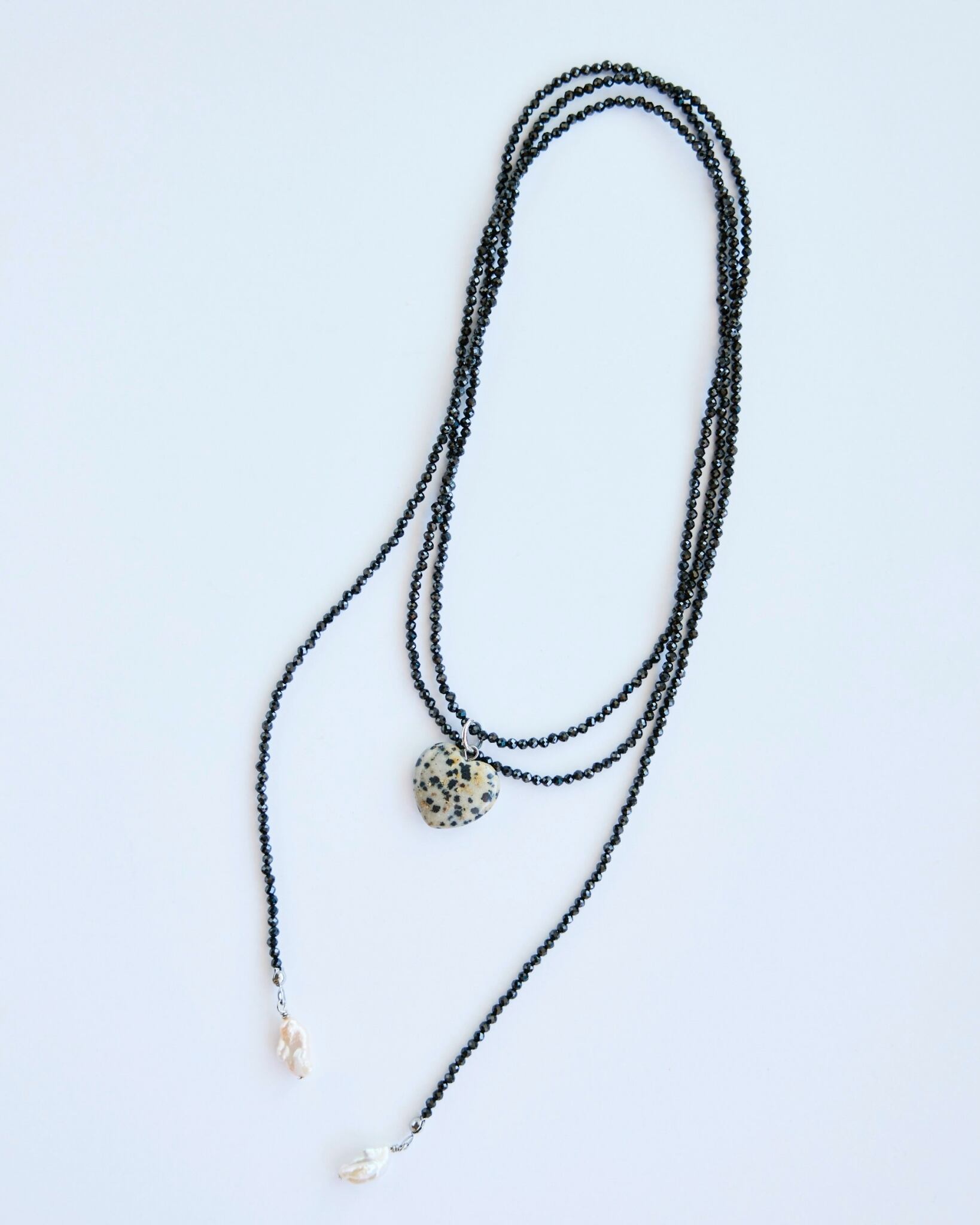 カットでキラキラときらめく小さなブラックスピネルを連ねた、ロープチョーカーが出来ました。
