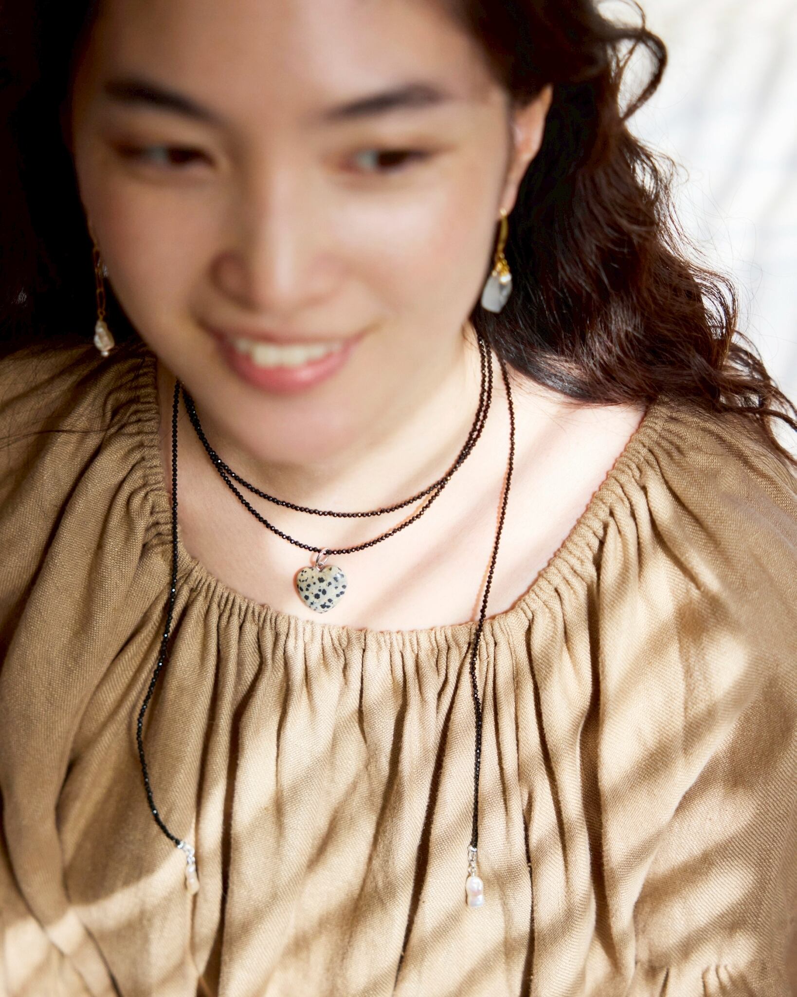 胸元にくるハートの天然石はあなたが好きな天然石をチョイスしてくださいね。