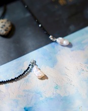 エンドチャームには天然のままの形を残した淡水パールをあしらい、強さの中にふわりとした甘さをプラス。