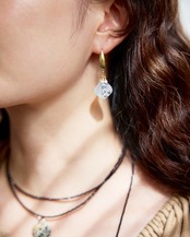 左右で異なる天然石を組み合わせた、アシンメトリーデザインの一点物ピアス。