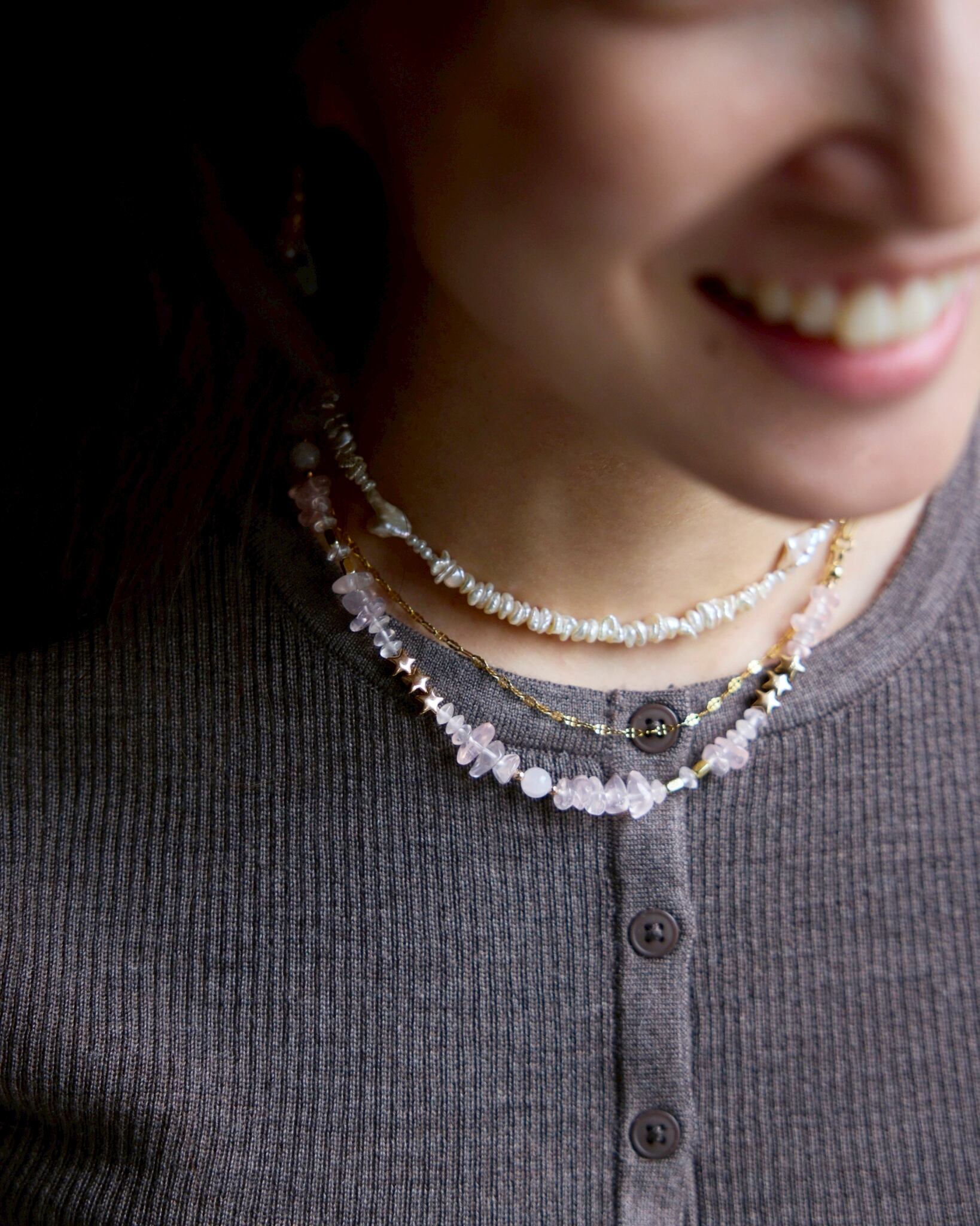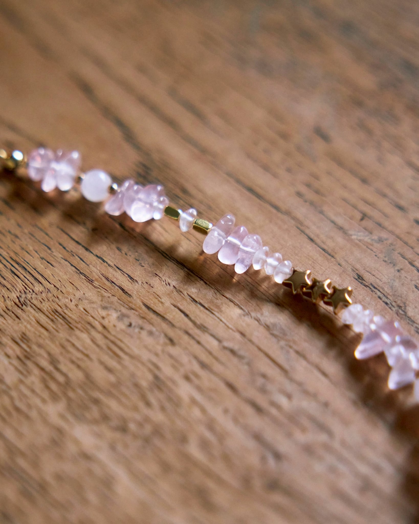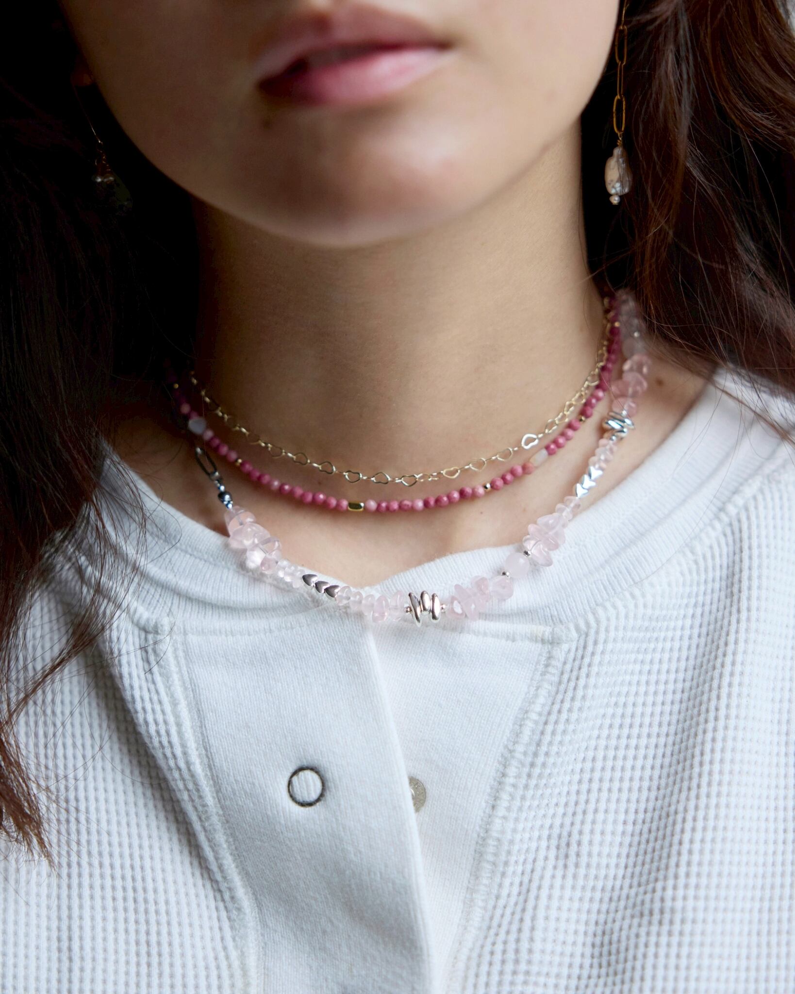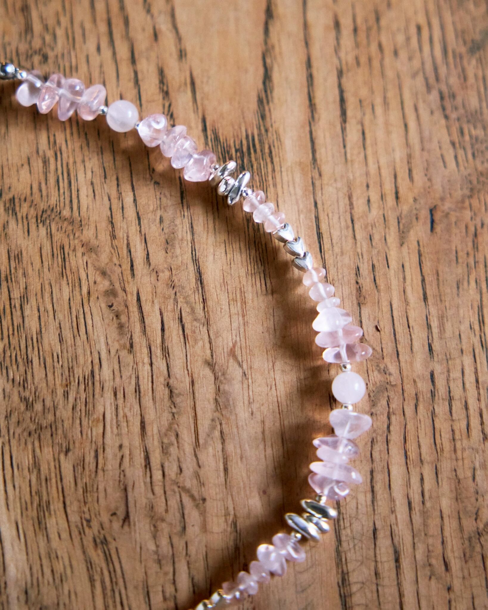 マダガスカル産ローズクォーツのさざれ石を贅沢に使用した、