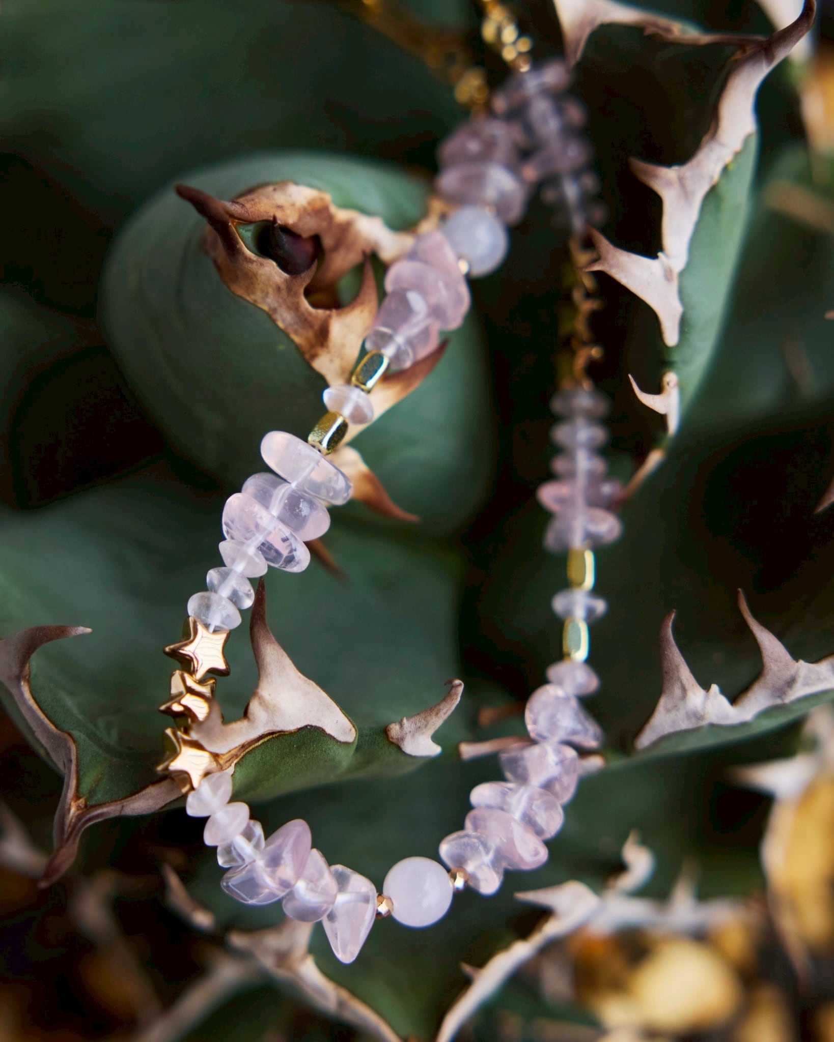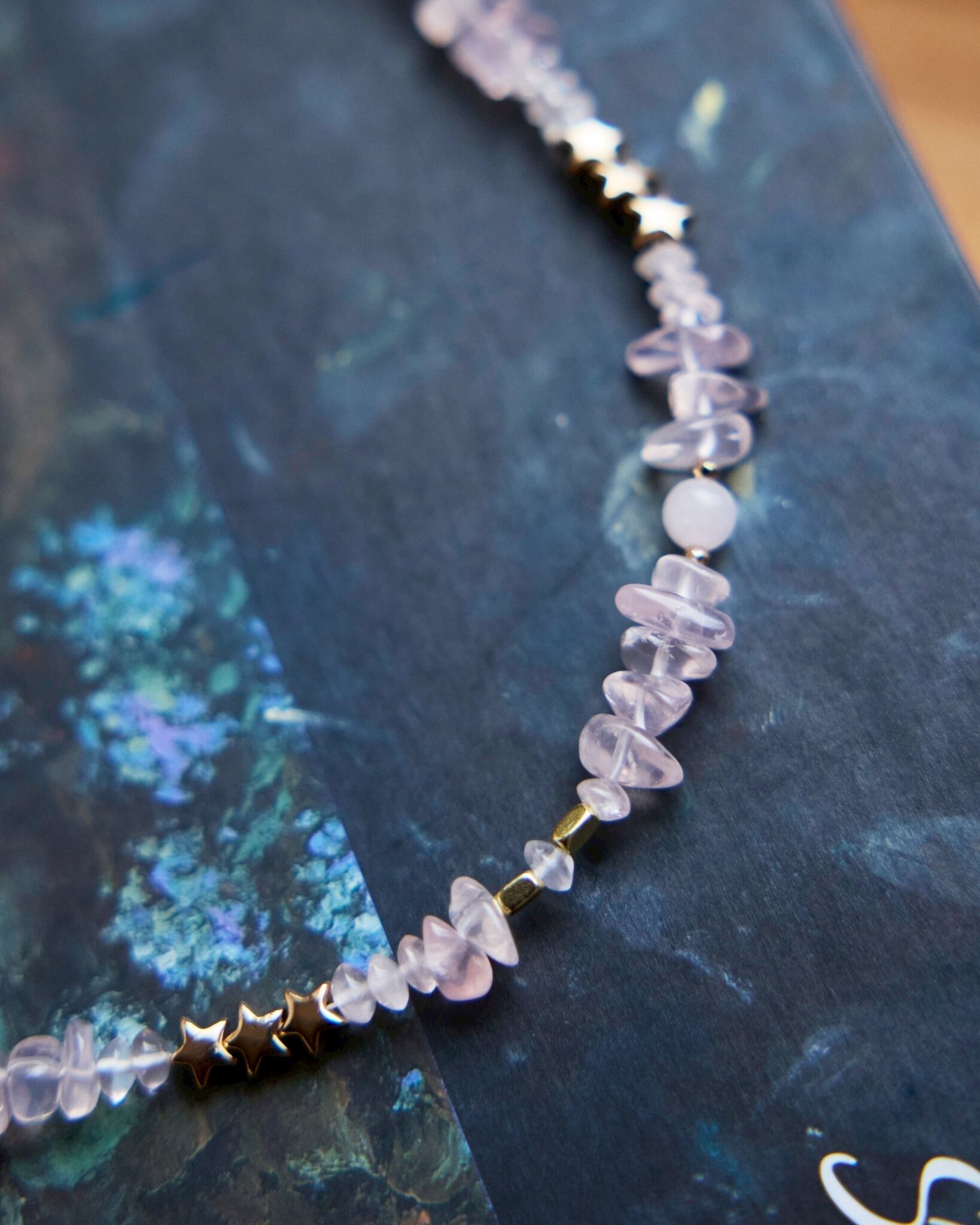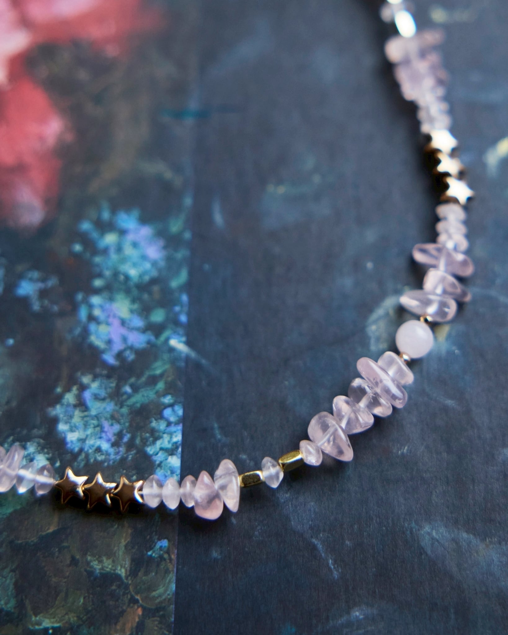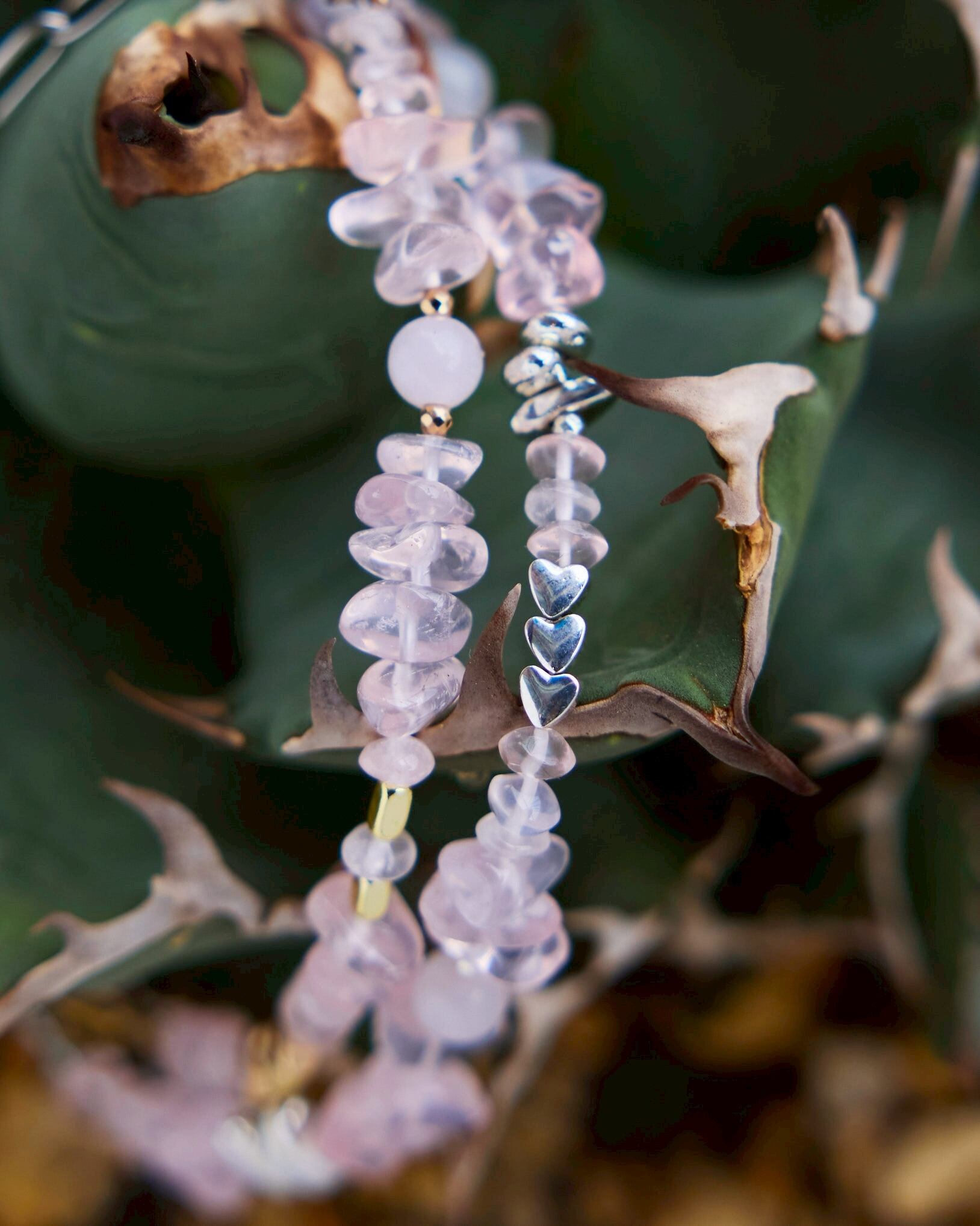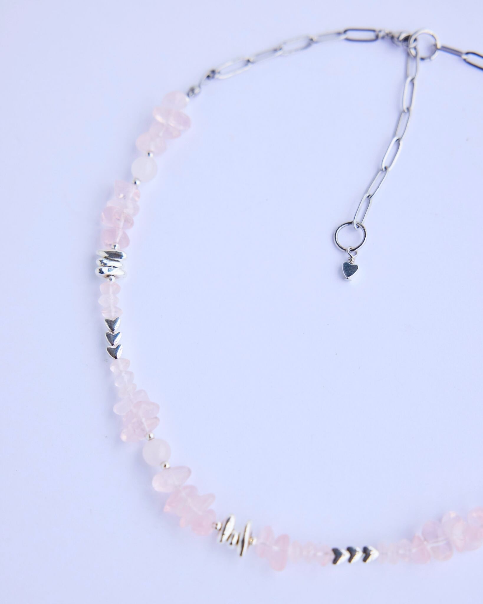 マダガスカル産ローズクォーツのさざれ石を贅沢に使用した、