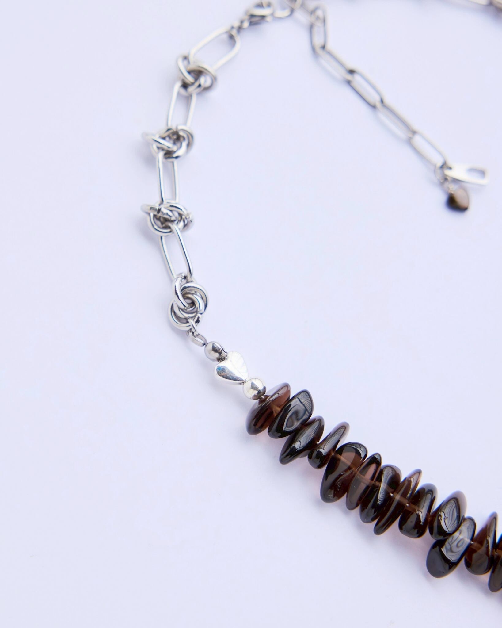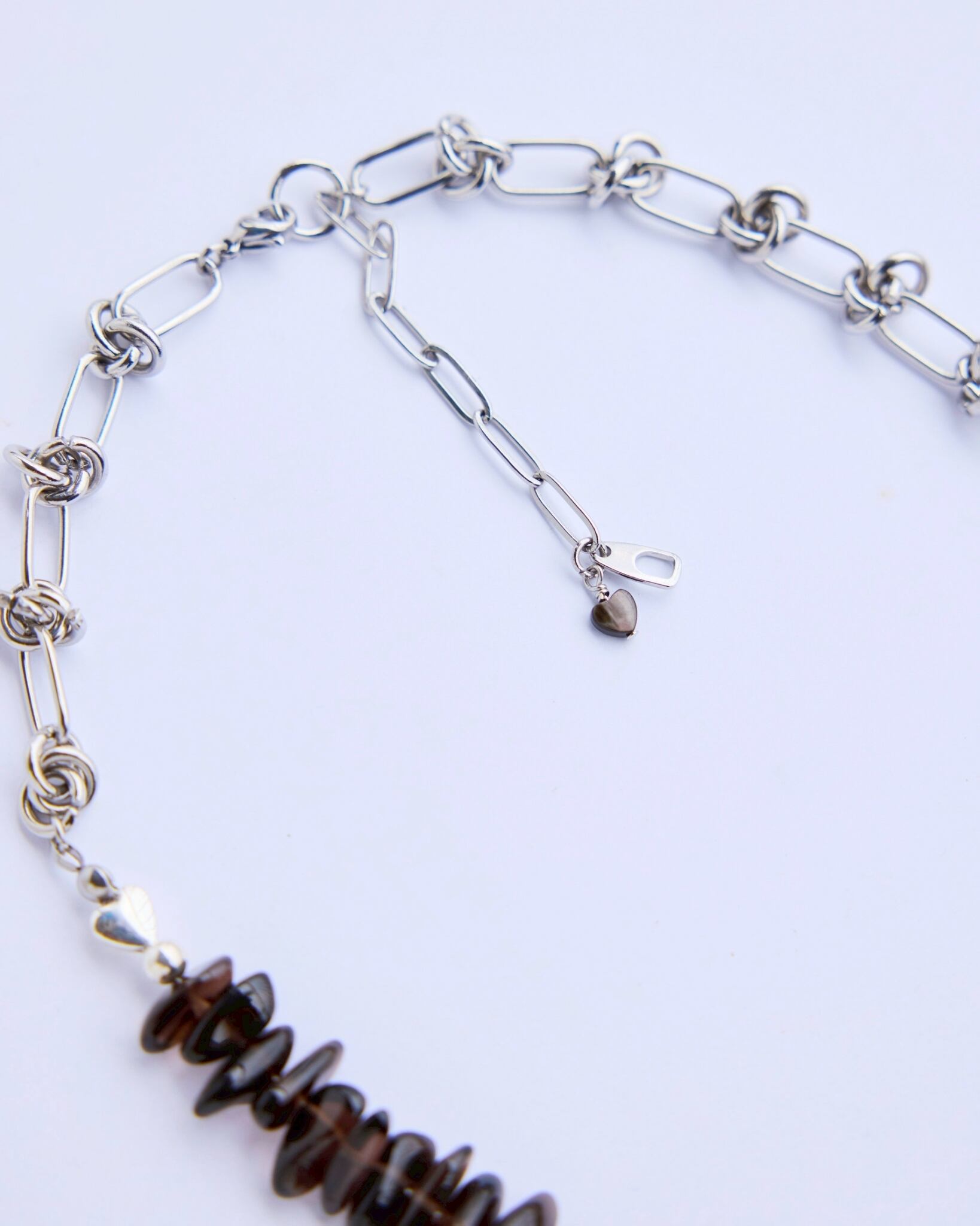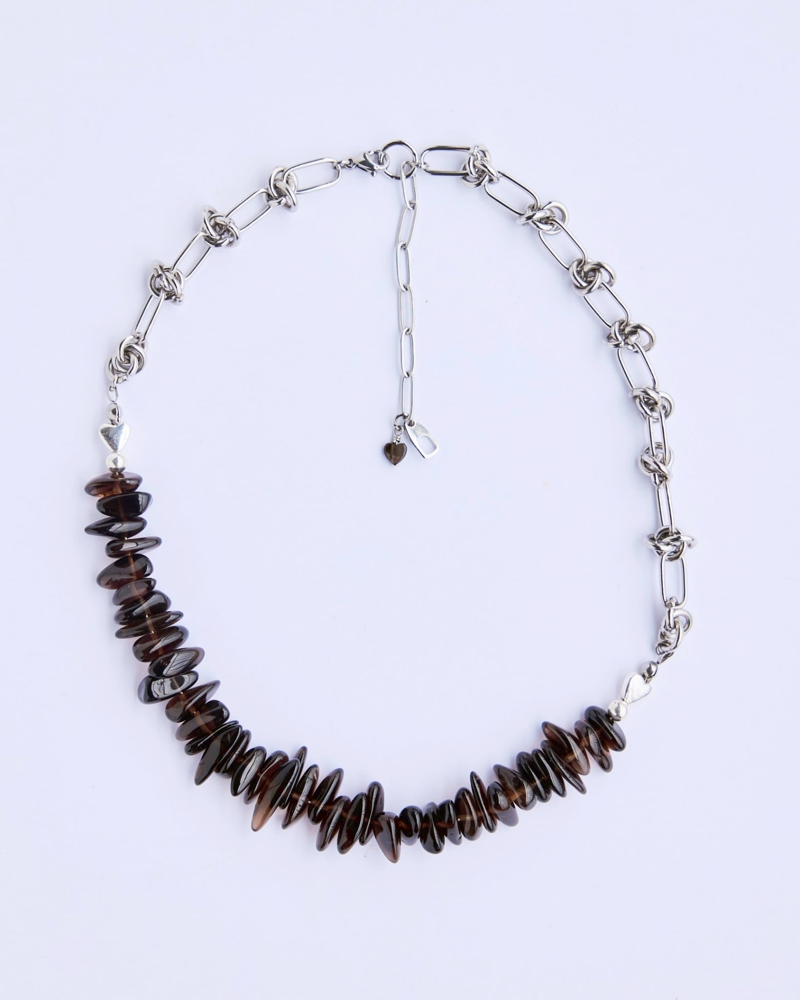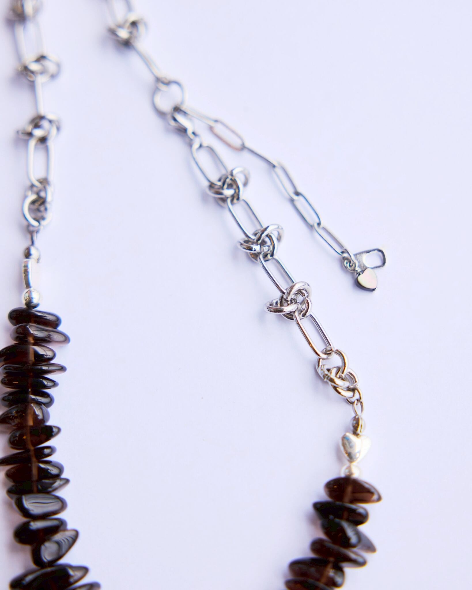 スモーキークォーツの自然なサザレを美しく連ねた部分には、