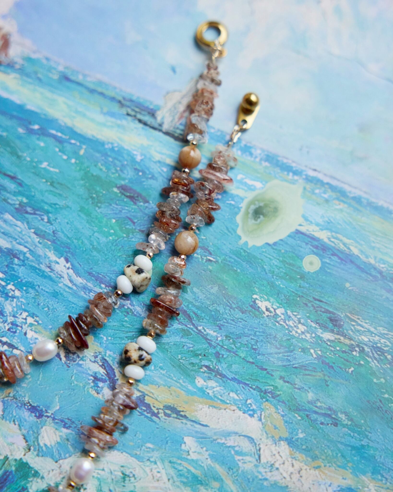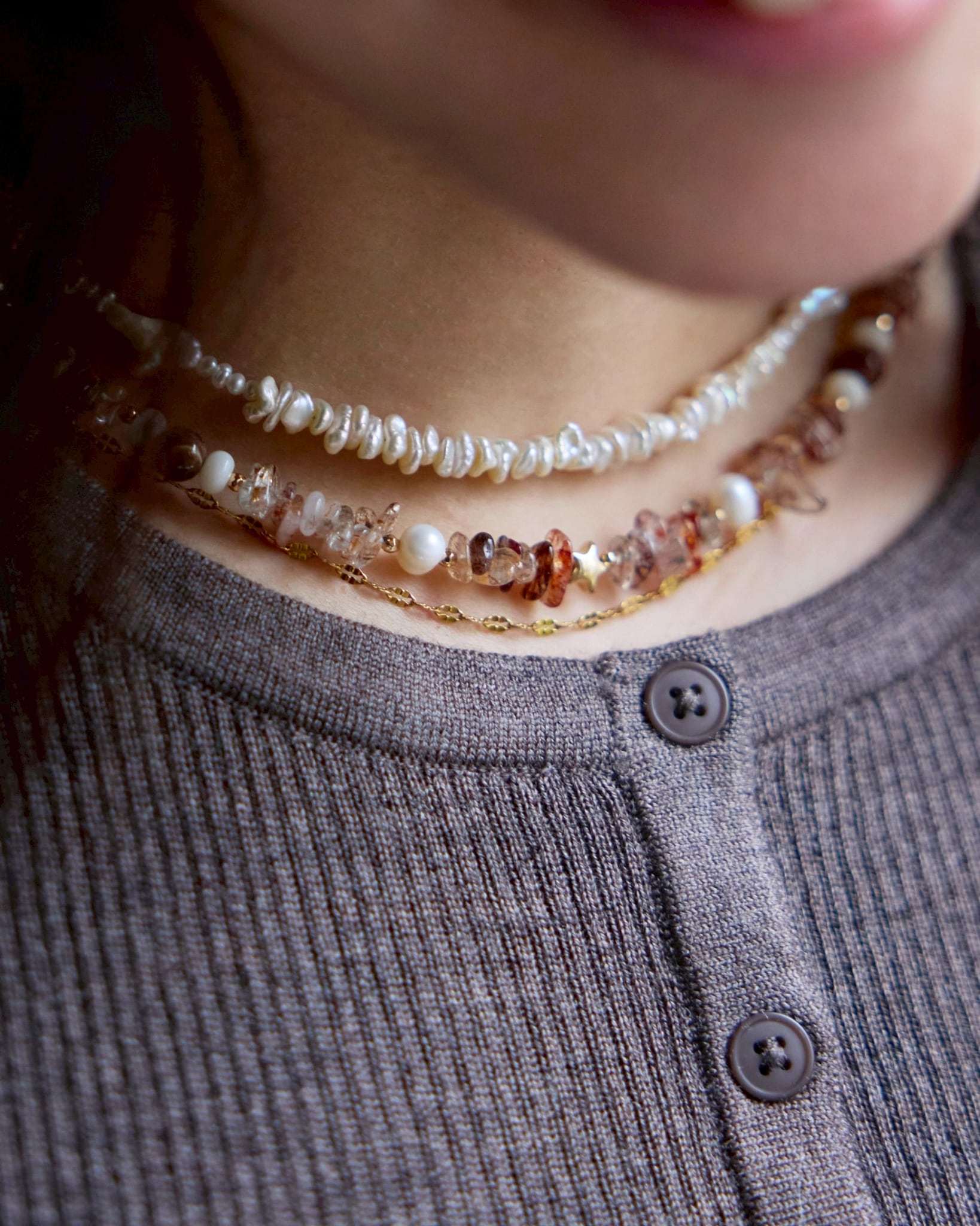 天然石は自然由来のため、水分・汗・太陽光・紫外線などの影響により、変色や経年による風合いの変化が生じることがあります。