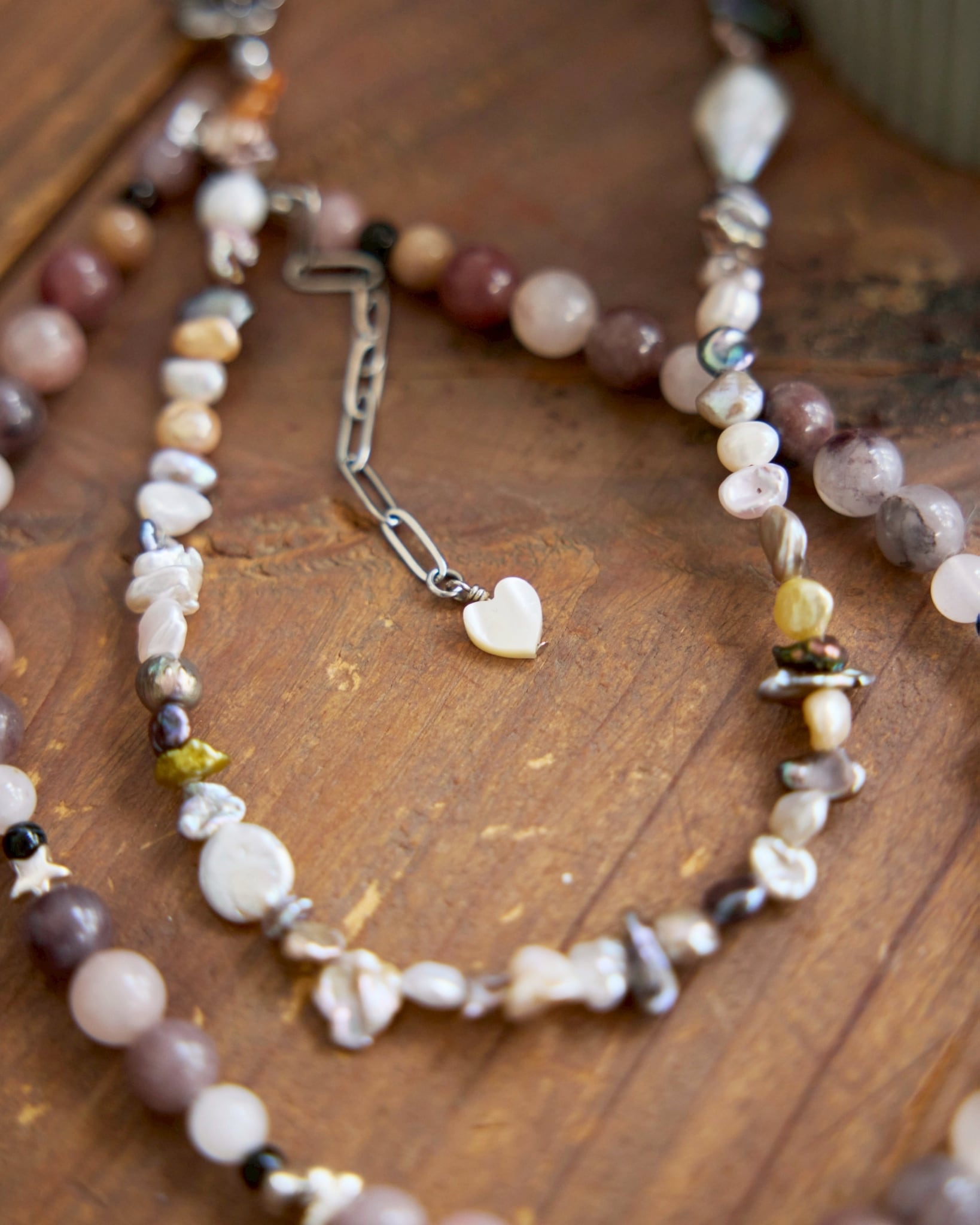 胸元で優しく揺れる ♡のマザーオブパールは、