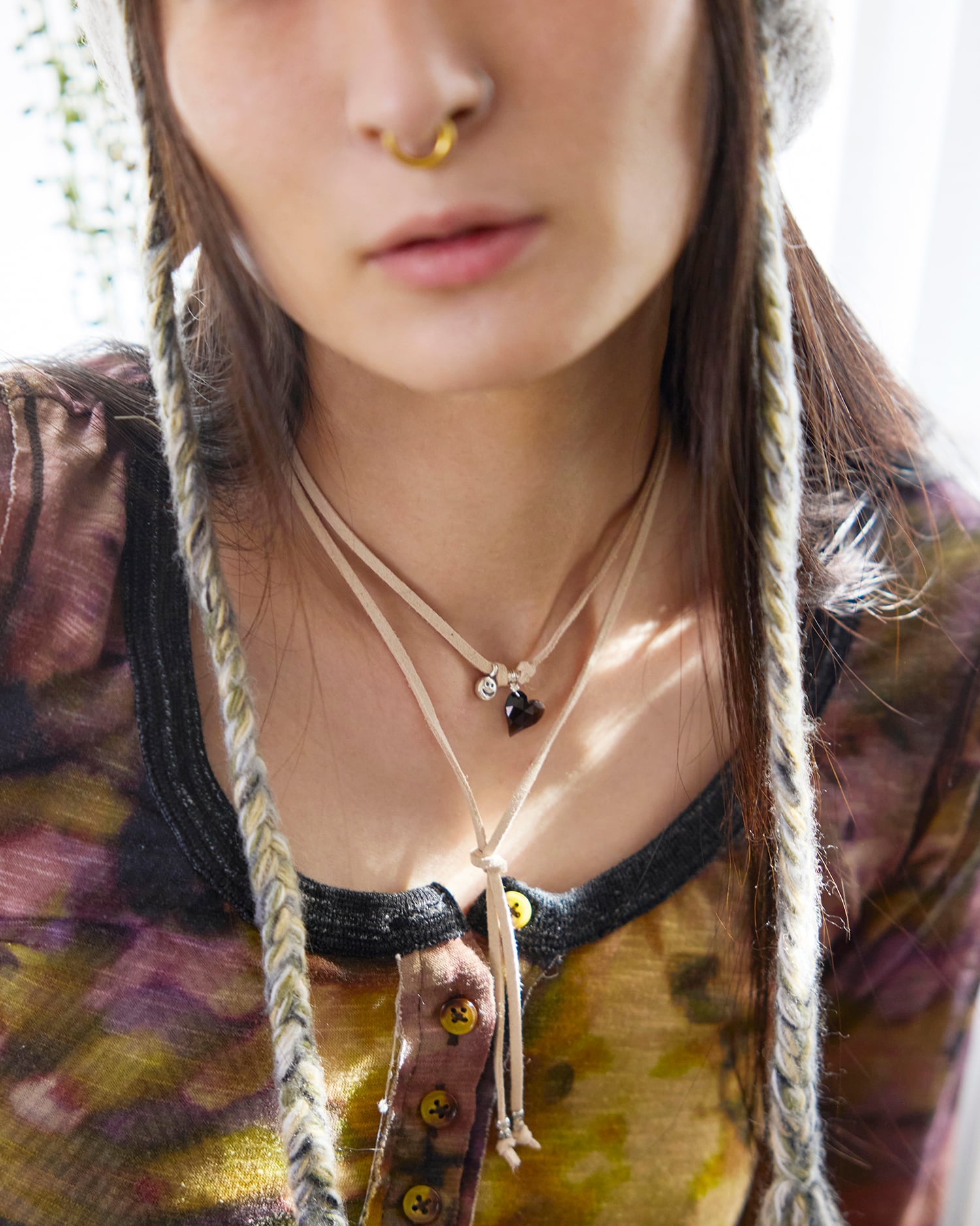 やわらかなフェイクスエード紐に、天然石をそっと結んだ
