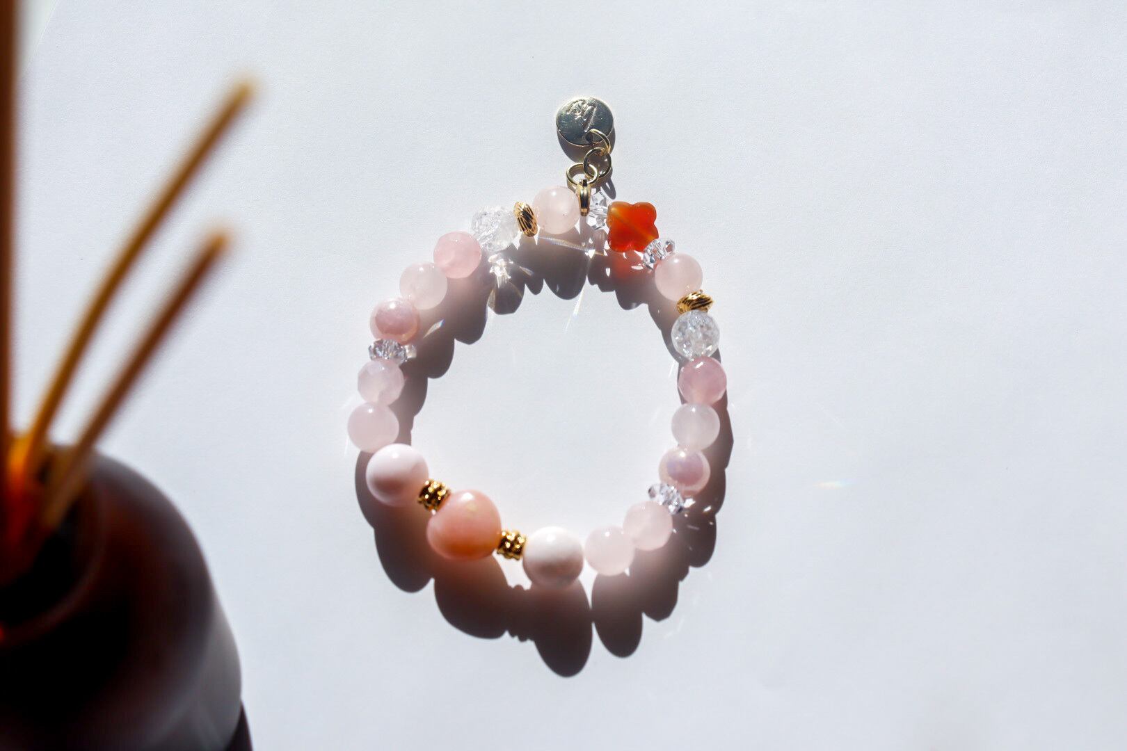 ローズクォーツ...恋のおまもり、女性のおまもり、美しさをサポートする、自己肯定を高める、心の傷や過去のトラウマを癒す、恋愛成就、人を愛するエネルギーを高める、優しさ、思いやりの心を高める